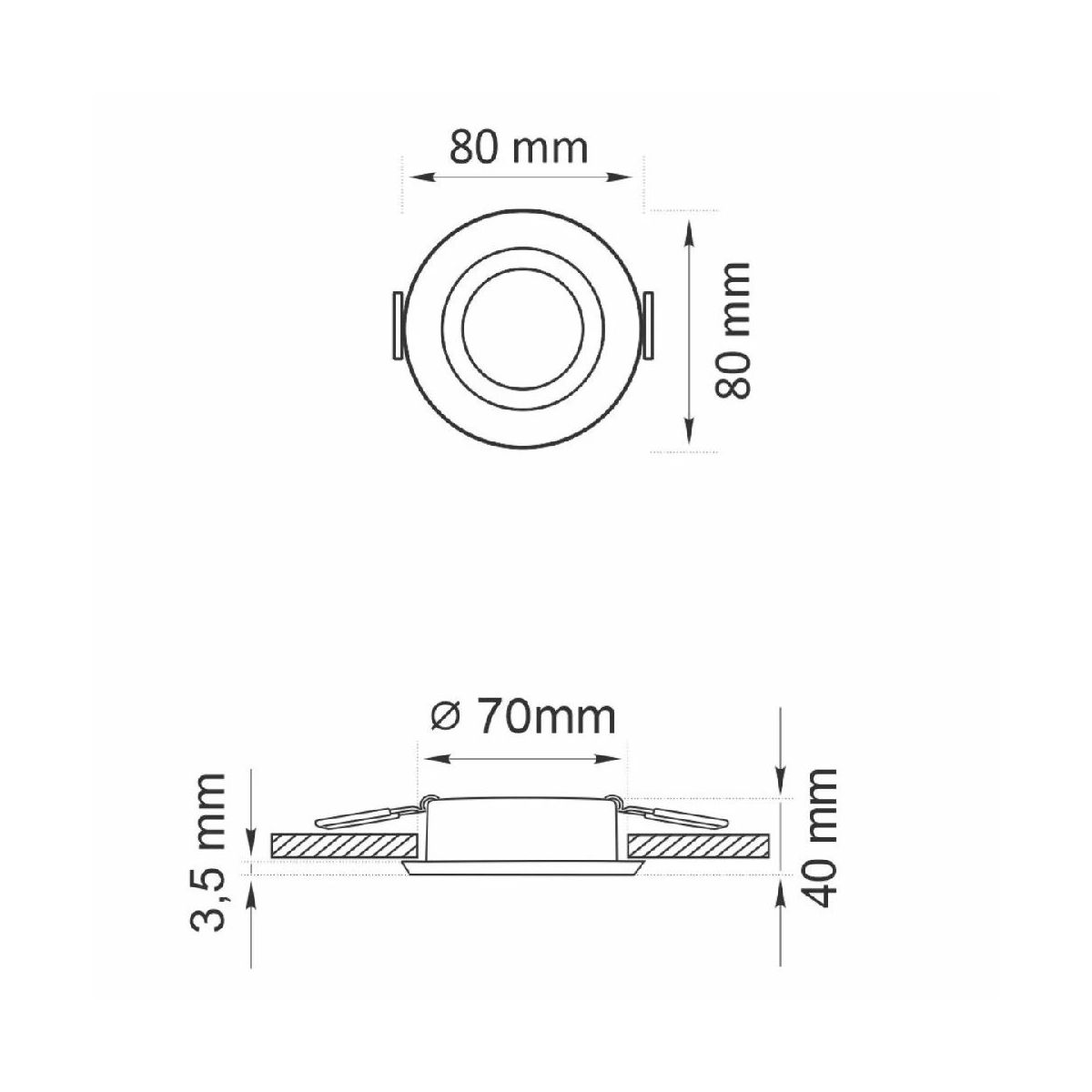 - Durchmesser der Montageöffnung: 7 cm