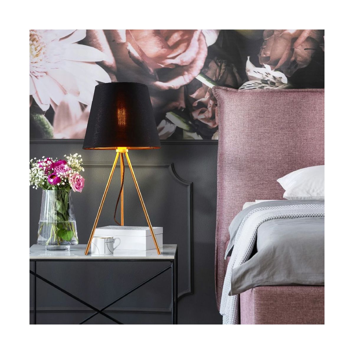 Der schwarze Lampenschirm in Kombination mit dem Metallfuß verleiht der Lampe einen zeitlosen Charakter. Durch ihre schlichte Form und die gedeckten Farben fügt sich die Leuchte harmonisch sowohl in elegante, klassische Innenräume als auch in moderne Räume im minimalistischen oder industriellen Stil ein. Dank des dezenten Lampenschirms wird das Licht sanft gestreut und schafft eine gemütliche Atmosphäre, die zum Entspannen und Ausruhen einlädt.