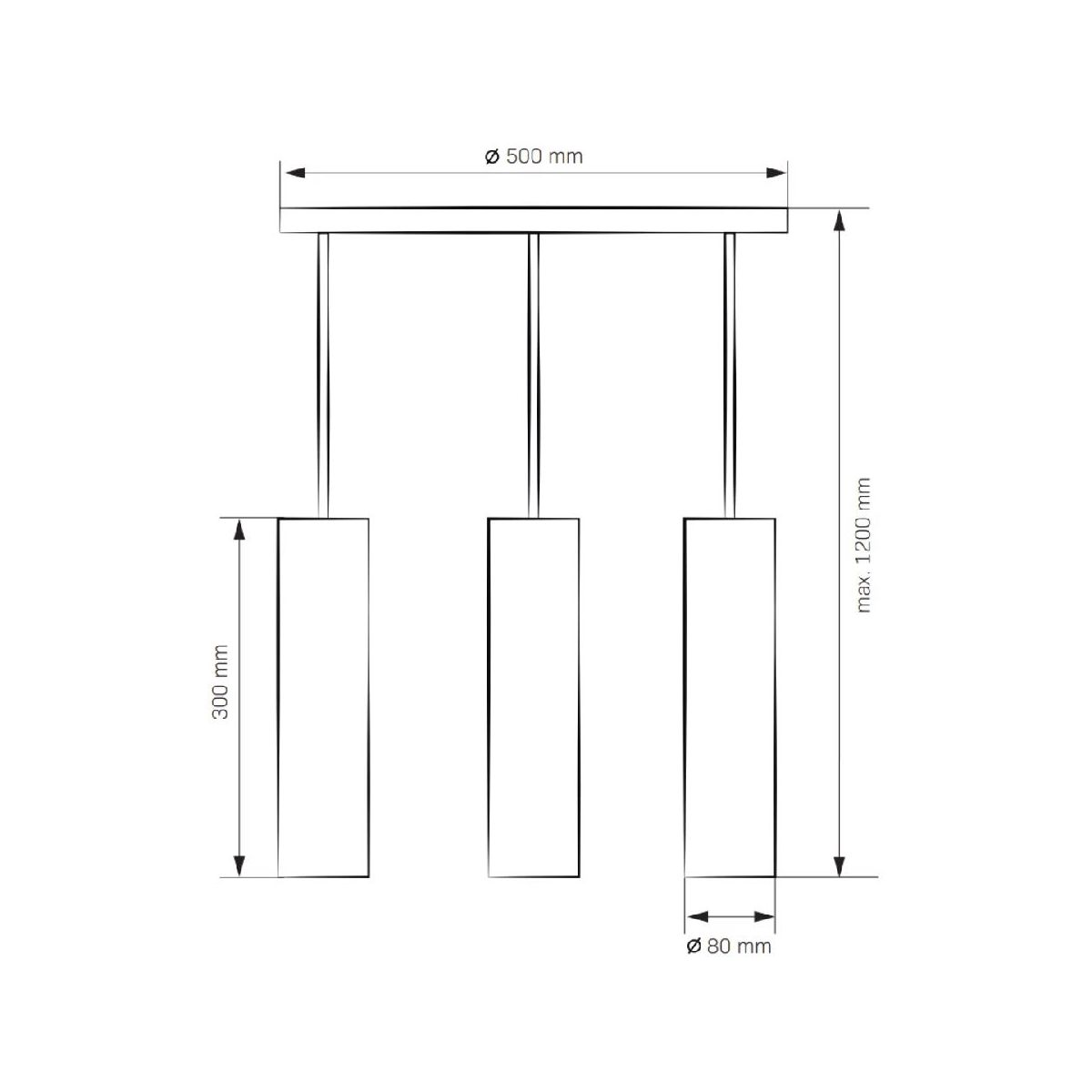 Die Leuchte ist mit drei Lichtpunkten mit GU10-Fassung ausgestattet, die mit Glühbirnen mit einer maximalen Leistung von jeweils 8 W kompatibel sind. Dank dieser Anordnung verteilt die Leuchte das Licht gleichmäßig und eignet sich perfekt über einem Tisch, einer Kücheninsel oder im Wohnzimmer. Die Gesamthöhe von 120 cm und die Breite von 50 cm sorgen für ideale Proportionen sowohl in großen als auch in mittelgroßen Räumen.