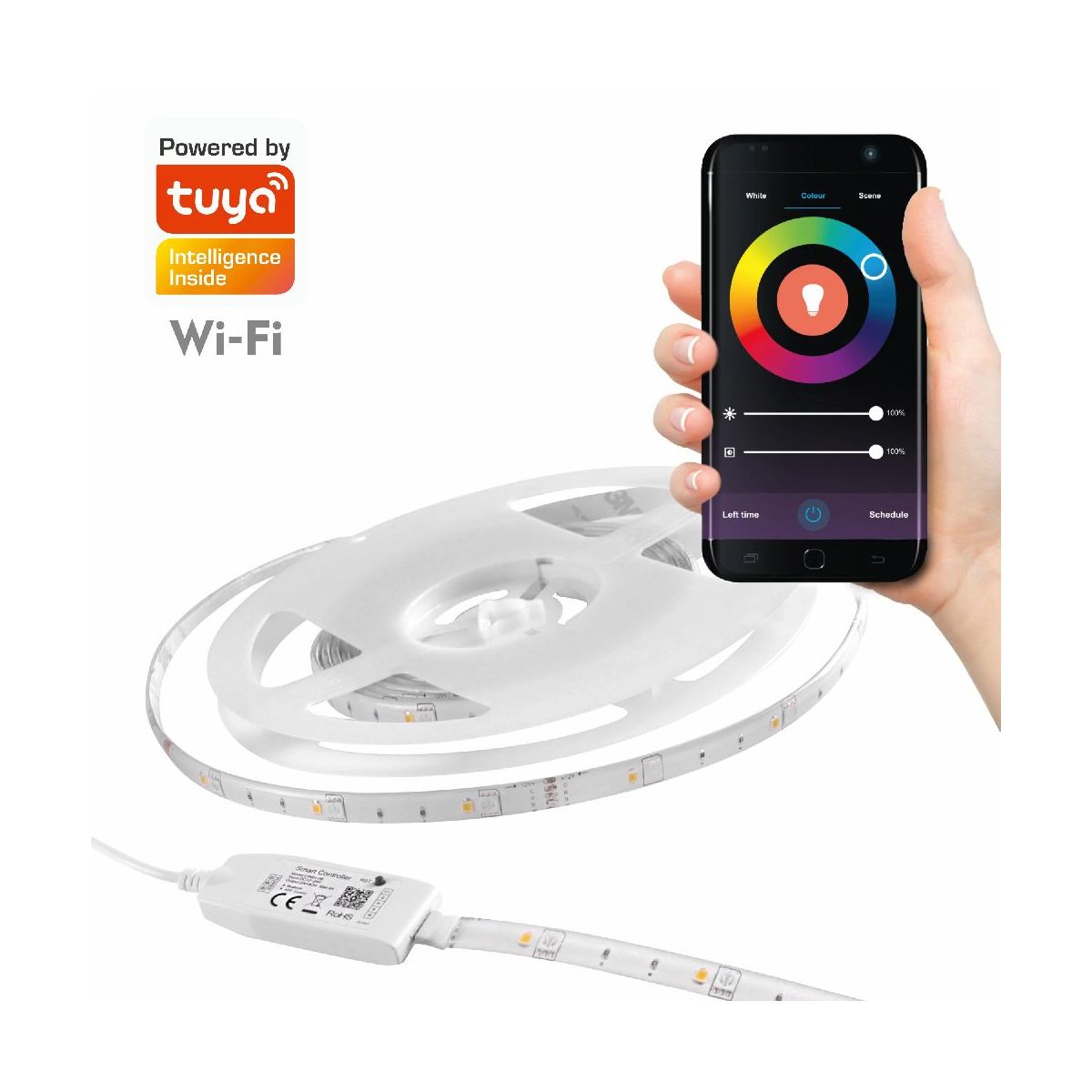 - IP20 – Steuerung, Netzteil, Fernbedienung IP65 – LED-Band