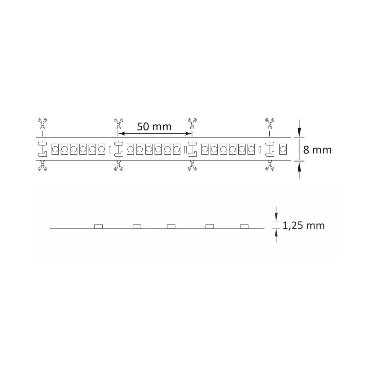 - kann alle 5 cm geschnitten werden = 6 x LED – Schnittstelle auf dem LED-Band markiert