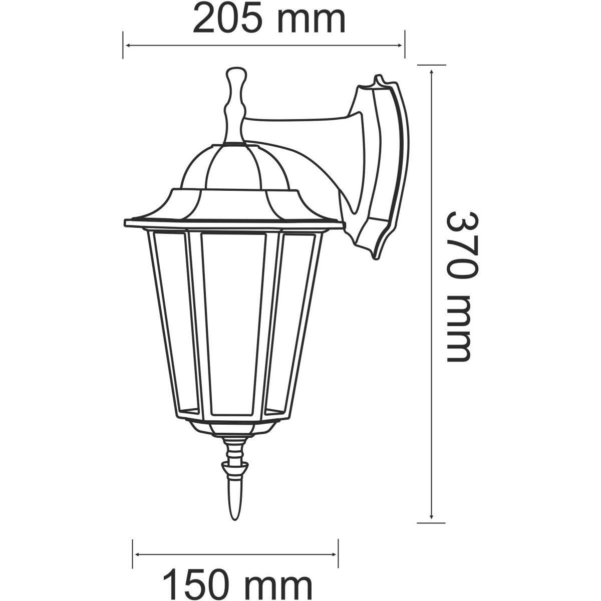 Mit einer Höhe von 37 cm und einer Breite von 20,5 cm wirkt die Außenwandleuchte Goldlux Liguria 1×20 W schwarz 201935 proportional und leicht. Durch ihre klassische Form mit dezenten Verzierungen fügt sie sich harmonisch in moderne, traditionelle oder rustikale Architektur ein.