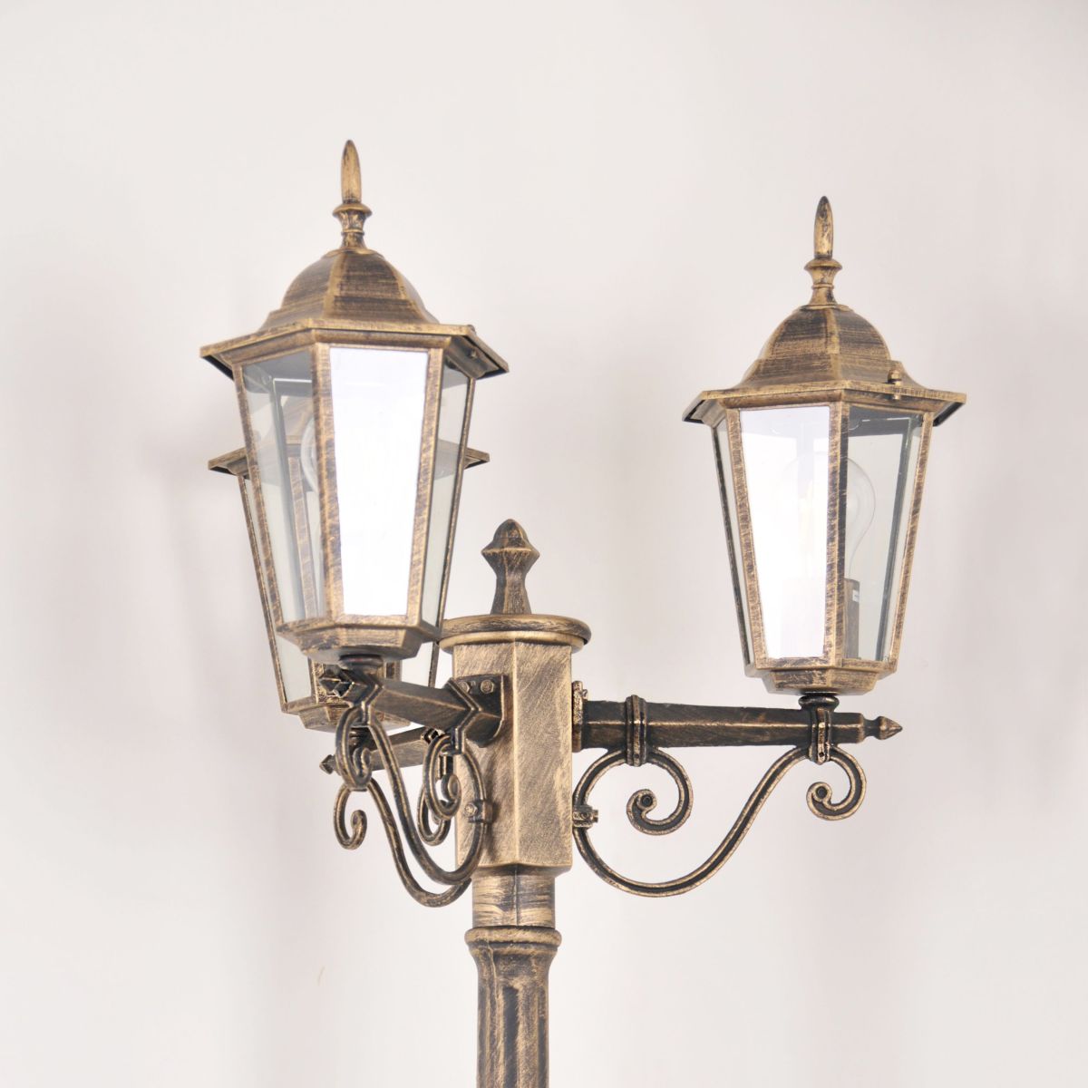 Die goldbraune Farbe unterstreicht den dekorativen Charakter der Außenstehlampe Goldlux Liguria 3 × 20 W Patina 313430 und verleiht dem Raum ein Retro-Flair. Dank der Möglichkeit, die Lichtquellen selbst auszuwählen, können Sie die Farbe und Intensität der Beleuchtung perfekt auf den Stil Ihres Gartens abstimmen.