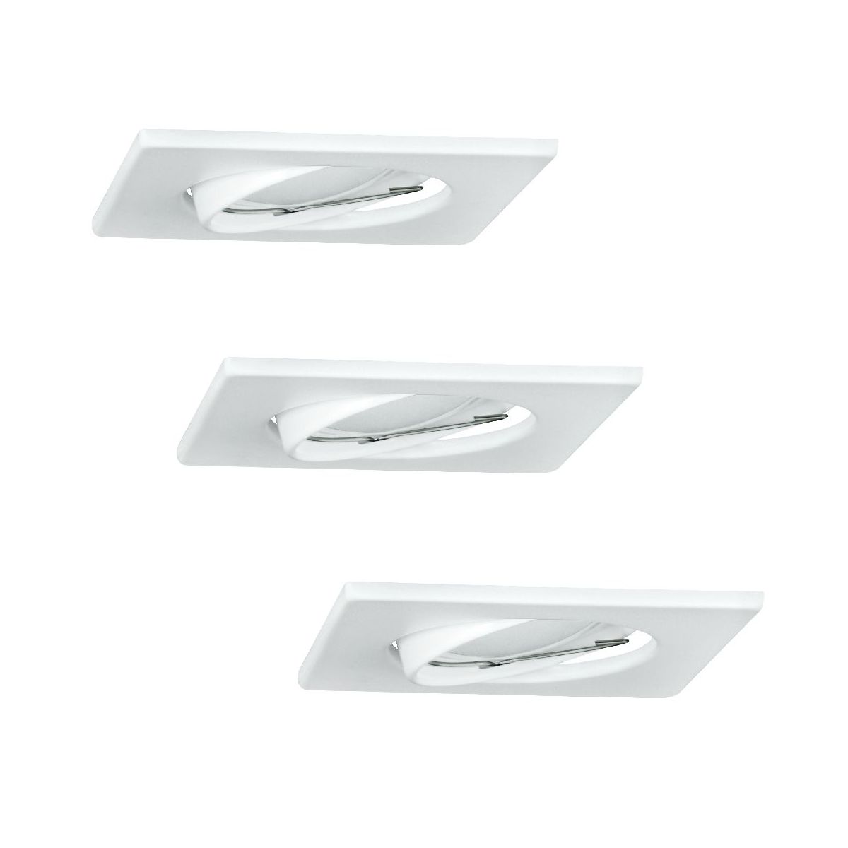 Die Leuchte ist mit einem GU10-Gewinde ausgestattet, das die Verwendung von Lichtquellen mit einer maximalen Leistung von 8 W ermöglicht. Im Lieferumfang sind 3 Fassungen und 3 LED-Lampen mit einer Leistung von 3,5 W enthalten, wodurch eine einheitliche Beleuchtung an mehreren Stellen im Raum geschaffen werden kann. Die Montage wird durch einen Lochdurchmesser von 7 cm und eine Einbautiefe von 5,2 cm erleichtert, wodurch sich die Leuchte gut für abgehängte Decken eignet. Die Schutzart IP20 ist für trockene Wohnräume vorgesehen.