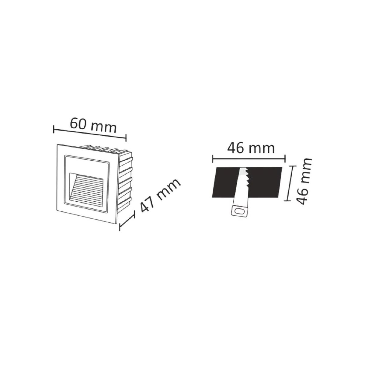Die integrierte 3-W-LED-Lichtquelle strahlt Licht mit einer Leistung von 20 lm und einer Farbtemperatur von 4000 K aus. Das neutrale Licht hebt Stufen und Kanten von Verkehrswegen dezent hervor, ohne die Nutzer zu blenden. Die Einbautiefe von 4,7 cm ermöglicht eine bequeme Montage der Leuchte in der Wand und sorgt für ein ästhetisches Erscheinungsbild.