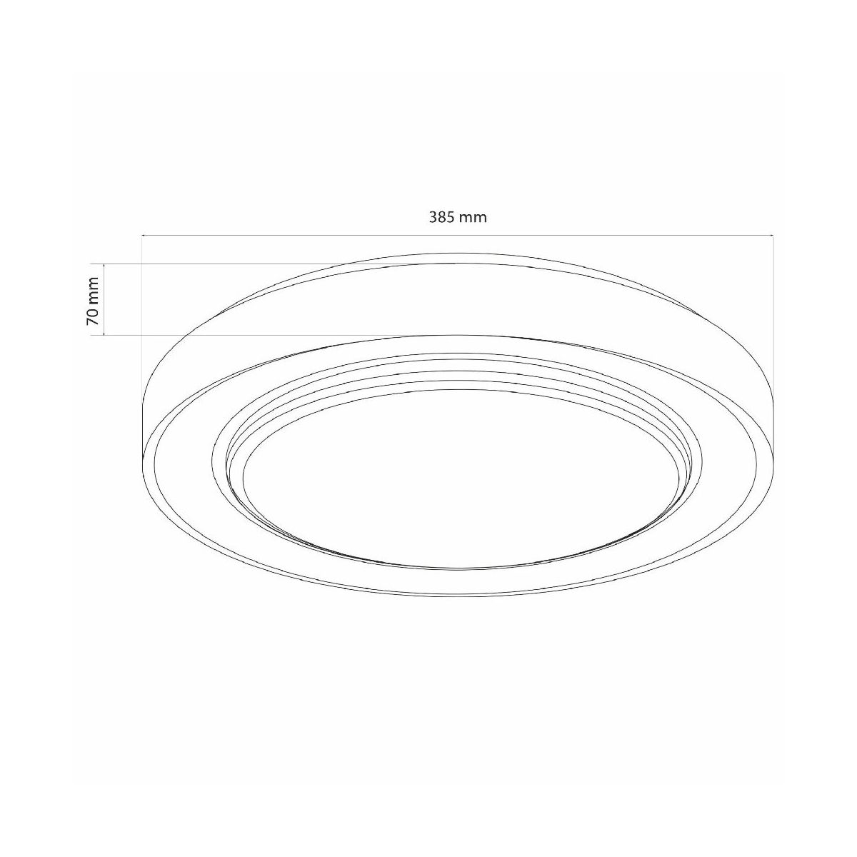 Die Deckenleuchte ist 7 cm hoch und hat einen Durchmesser von 38,5 cm, wodurch sie sich ideal für Räume mit niedrigerer Decke eignet. Die Schutzart IP44 macht die Leuchte feuchtigkeitsbeständig, wodurch sie sich auch hervorragend für Badezimmer oder Küchen eignet.