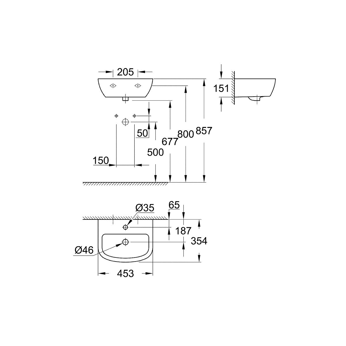 Grohe Bau Ceramic Waschbecken 45.3x35.4 cm halbrund Klassisch weiß 39424000
