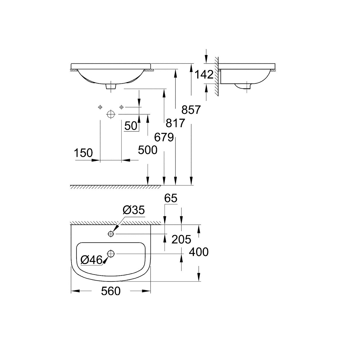 Grohe Bau Ceramic Waschbecken 56x40 cm halbrund Einbauwaschbecken weiß 39422000