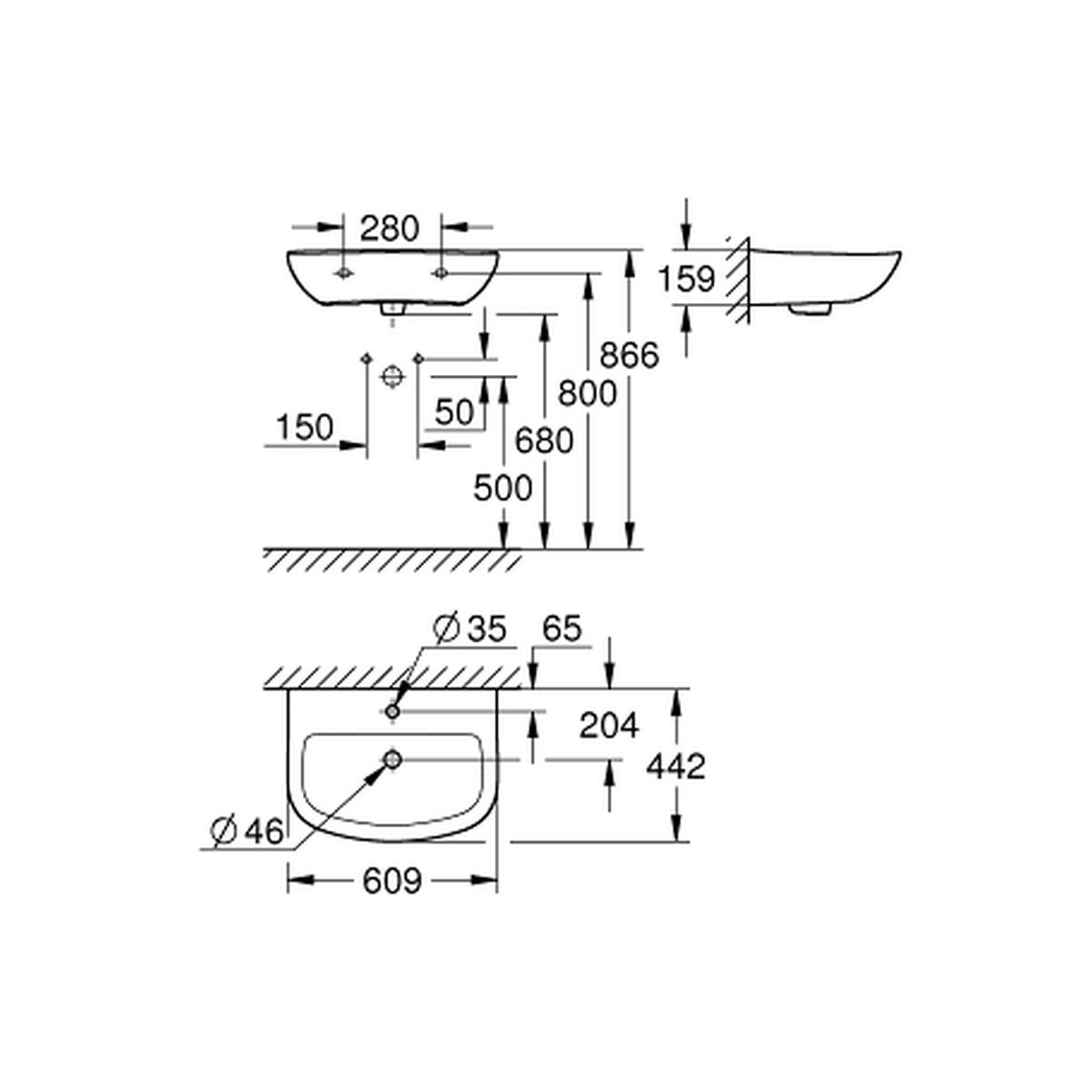 Grohe Bau Ceramic Waschbecken 60.9x44.2 cm halbrund Klassisch weiß 39421000