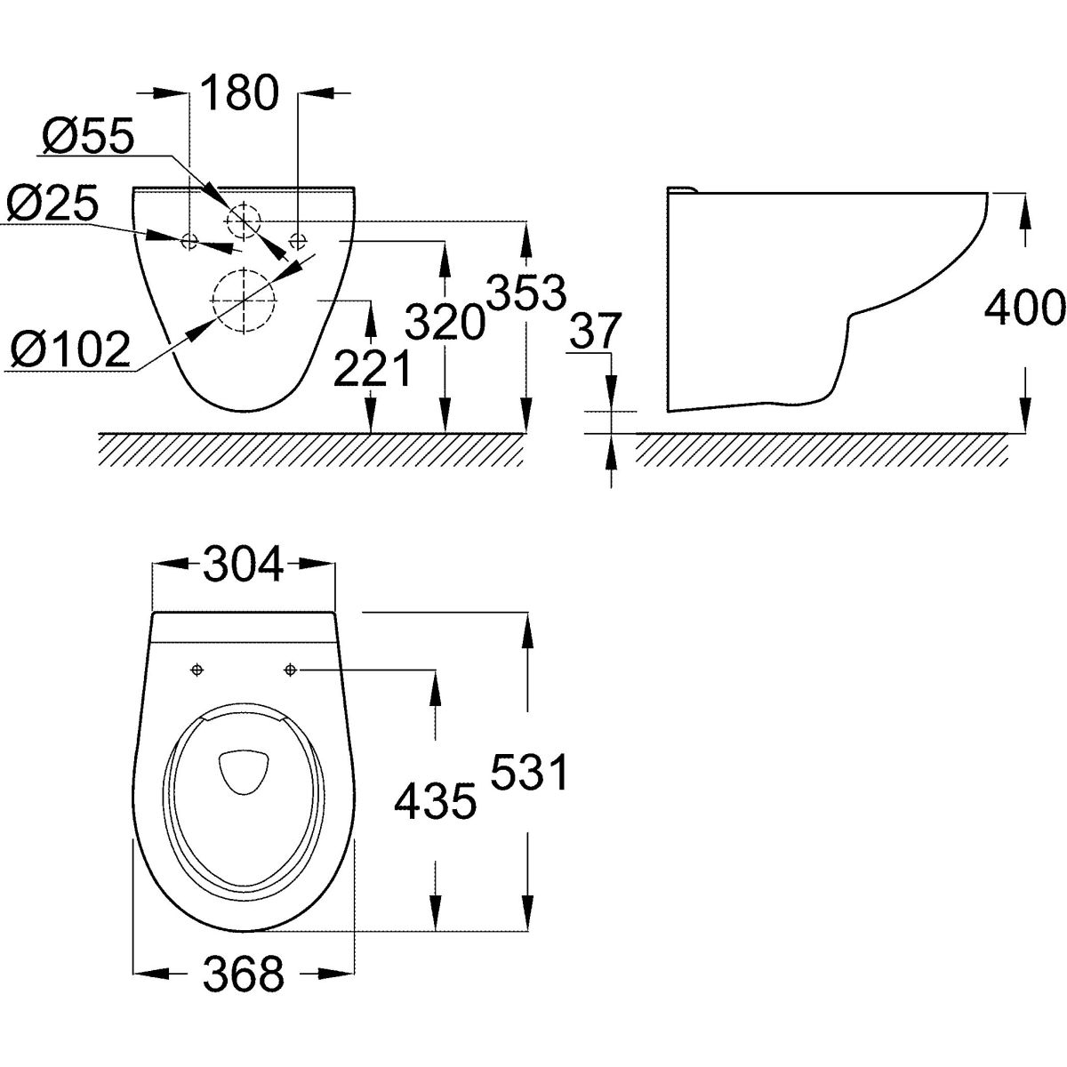 Grohe Bau Ceramic WC-Becken hängend Spülrandlos weiß 39427000