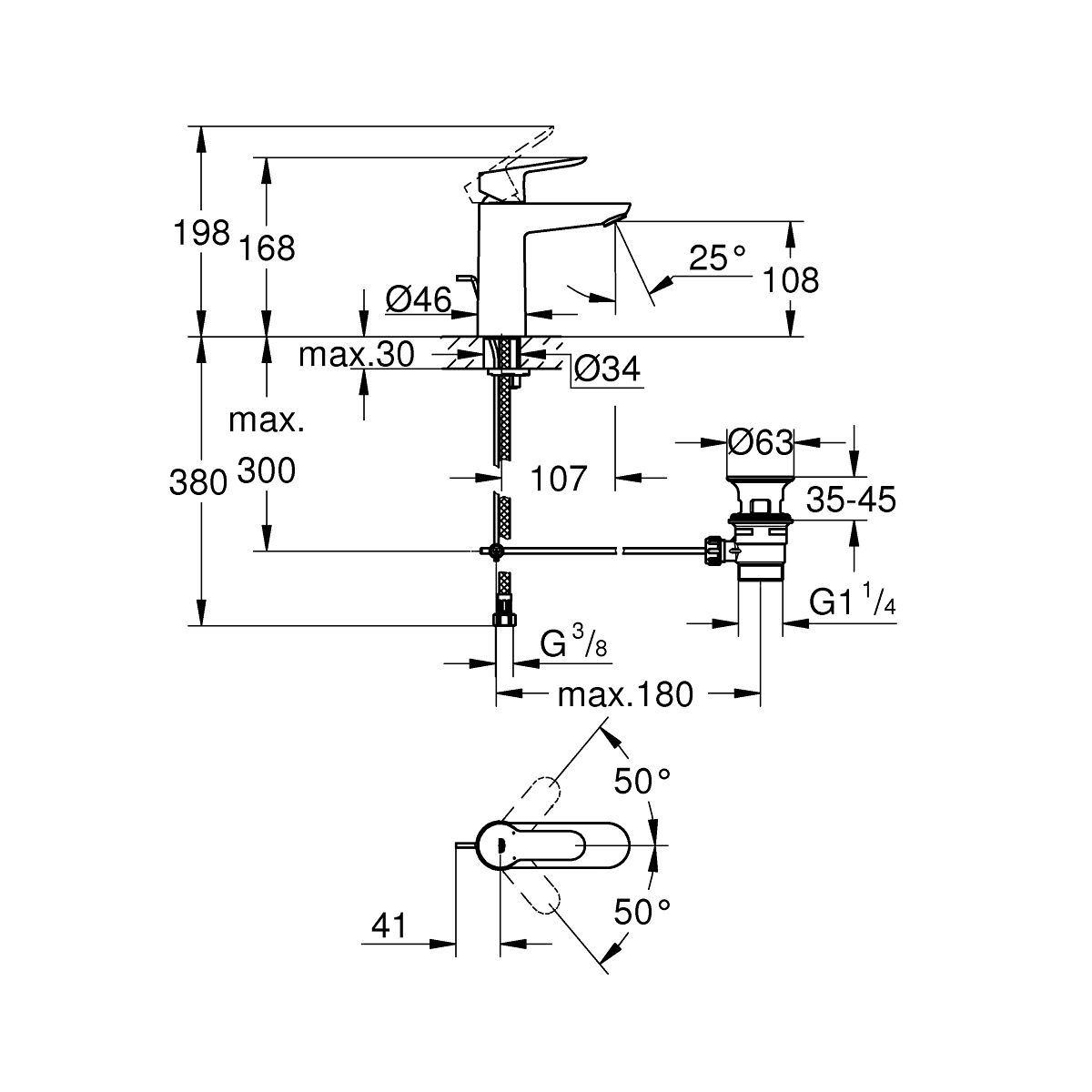 Grohe BauEdge Waschtischarmatur Stehend StarLight Chrome 23758000