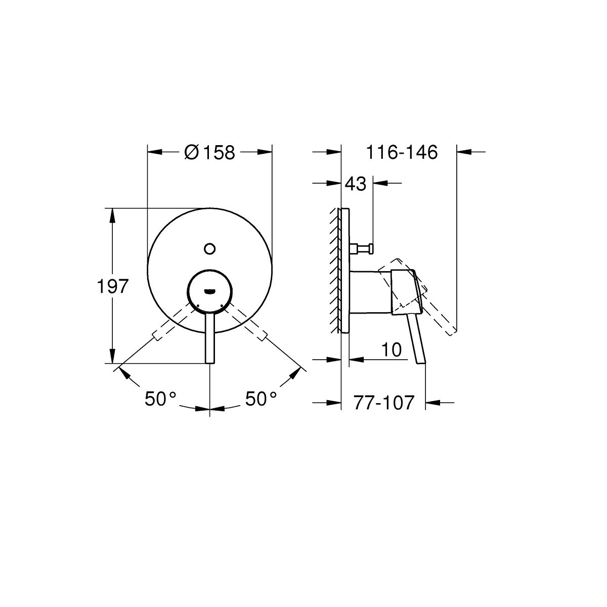 - GROHE QuickFix Wandrosette (mit Dichtung, verdeckte Befestigungen)