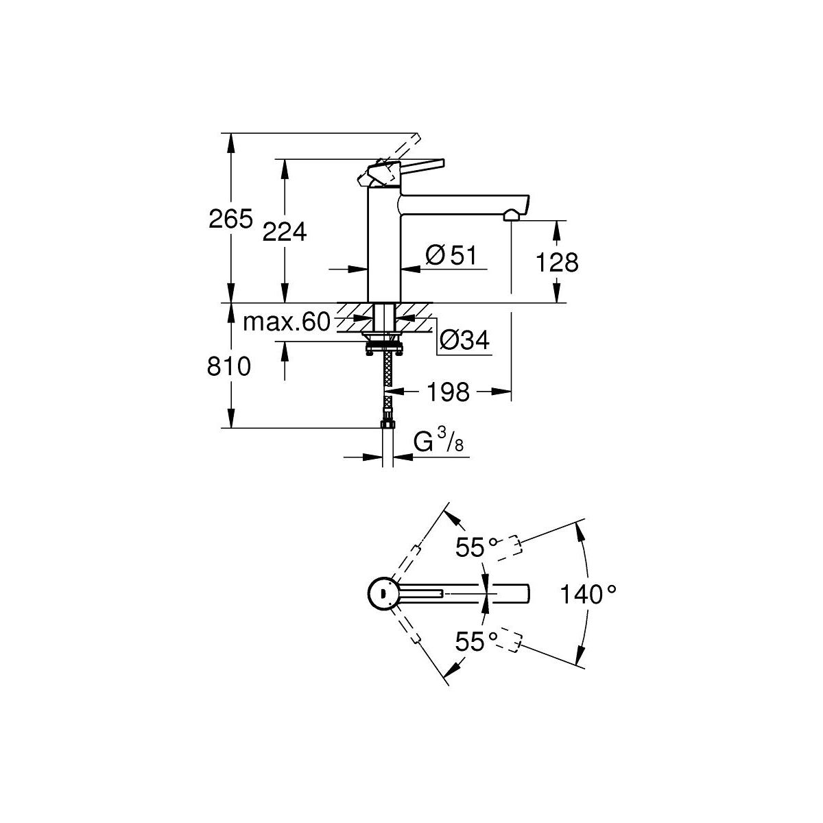 - schwenkbarer Auslauf, Schwenkbereich 140°
