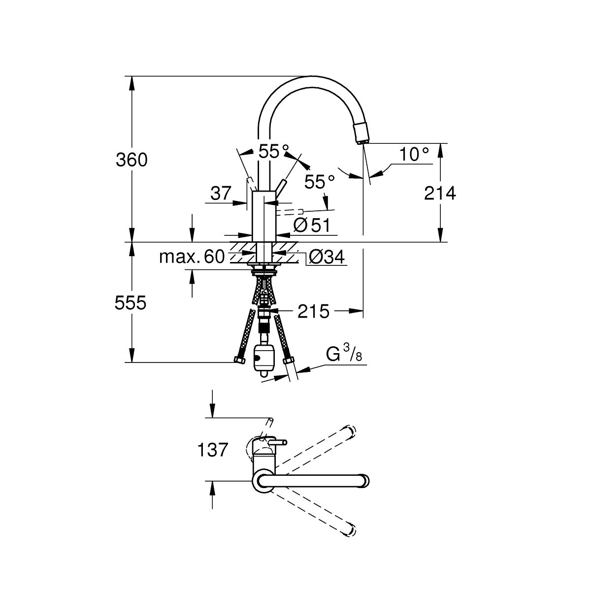- Grohe EasyDock zum einfachen Verstauen des ausziehbaren Auslaufs