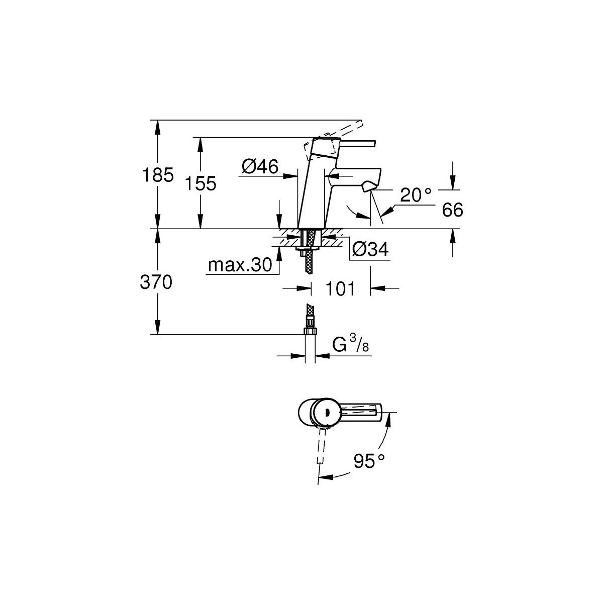 - Grohe SilkMove® ES 28 mm mit Keramikkopf und Sparfunktion beim Öffnen des Kaltwasserhahns