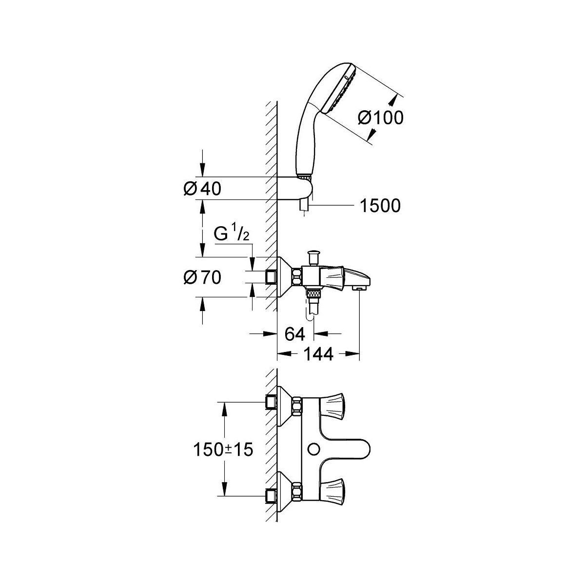 Grohe Costa Badewannen- und Duscharmatur Wandmontage StarLight Chrome 2546010A