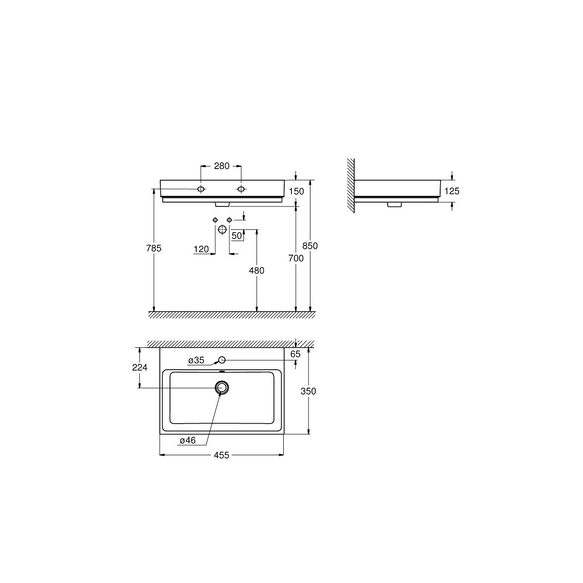 Grohe Cube Ceramic Waschbecken 45.5x35 cm rechteckig Klassisch weiß 3948300H