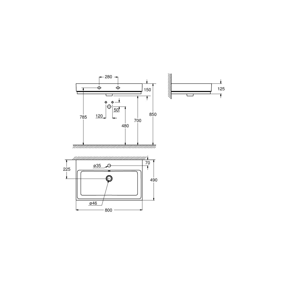 Grohe Cube Ceramic Waschbecken 80x49 cm rechteckig Klassisch weiß 3946900H