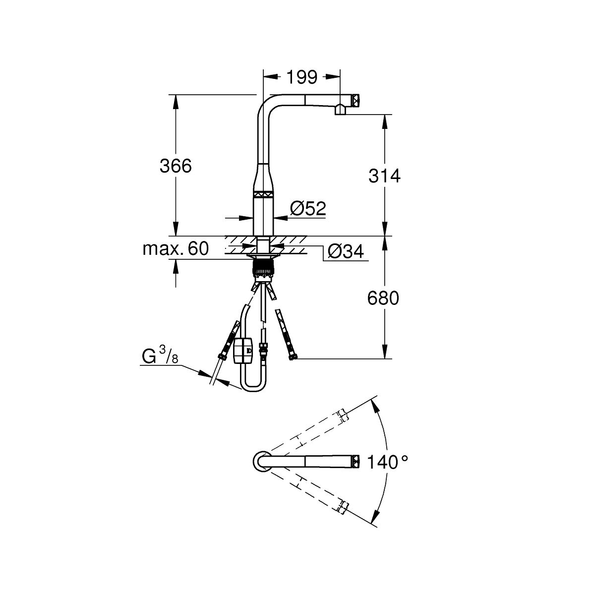 - Grohe Magnetic Docking für einfaches und präzises Andocken des ausziehbaren Auslaufs in die Ausgangsposition