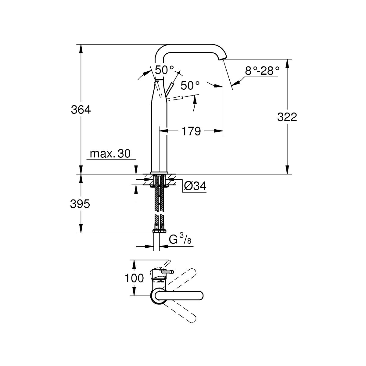 Sind Sie auf der Suche nach einer luxuriösen Armatur für ein Aufsatzwaschbecken? Dann ist Grohe Essence die perfekte Wahl! Die Armatur wurde in XL-Größe entworfen, sodass sie perfekt zu freistehenden Waschbecken passt und durch ihre elegante Ausführung besticht. Ihr Design basiert auf einer fantasievollen Kombination aus zylindrischen, geometrischen Formen, und die Sorgfalt der Ausführung wird durch die stilvolle SuperSteel-Beschichtung unterstrichen. Ihre matte Oberfläche sorgt für eine hohe Kratzfestigkeit und eine äußerst einfache Reinigung – ein Wisch mit einem Mikrofasertuch genügt, damit die Armatur wieder wie neu aussieht. Ein ähnliches Maß an Perfektion weist der keramische Grohe SilkMove-Kopf auf, der sich im Metallkörper der Armatur befindet. Er ist für die reibungslose Bedienung des Hebels verantwortlich, mit dem Sie die Temperatur auch nach vielen Jahren intensiver Nutzung mühelos einstellen können. Hoher Bedienkomfort wird Ihnen auch durch den Grohe EcoJoy-Strahlregler gewährleistet, der einen vollen Wasserstrahl garantiert und gleichzeitig den Wasserverbrauch auf nur 5,7 l/min begrenzt. Vertrauen Sie auf die langjährige Erfahrung der Marke Grohe und entscheiden Sie sich für die exklusive Armatur Essence!