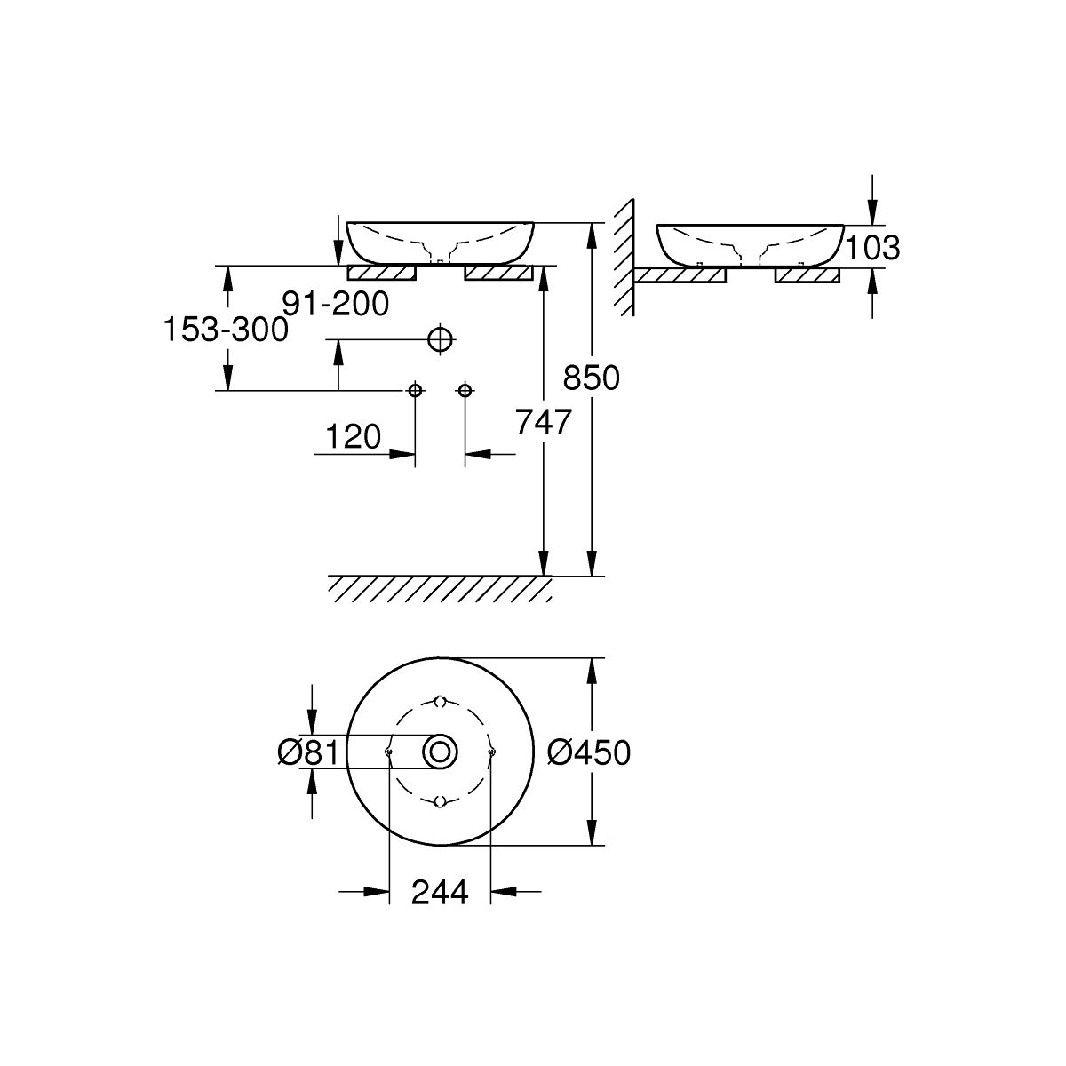 Grohe Essence Waschbecken 45x45 cm rund Aufsatzwaschbecken weiß 3960900H