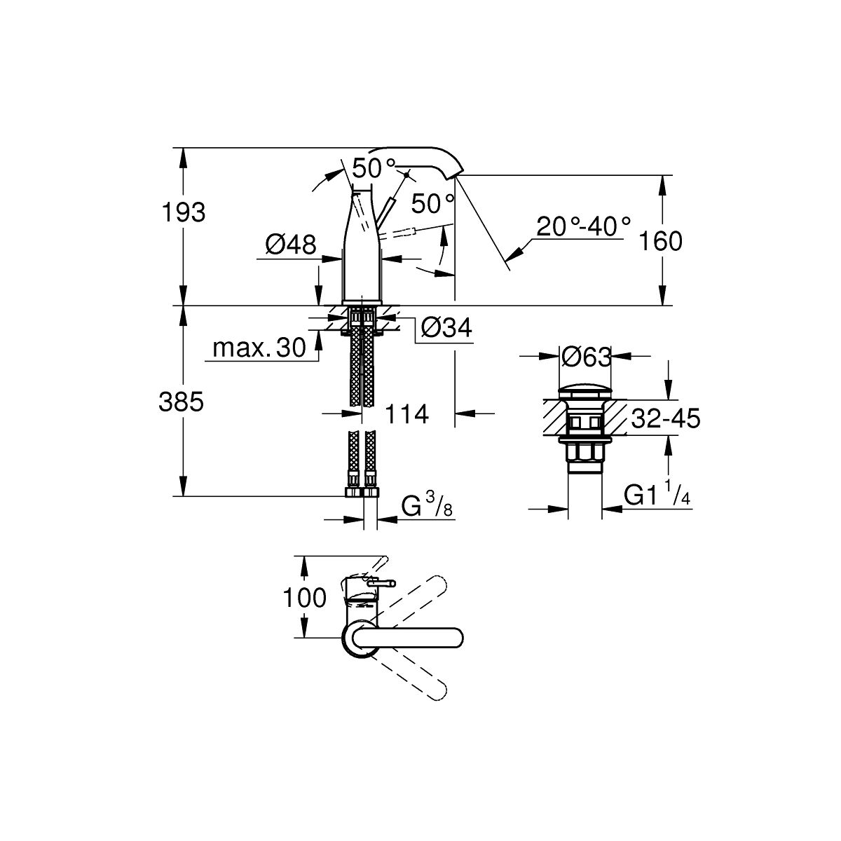 Grohe Essence Waschtischarmatur Stehend StarLight Chrome 23798001