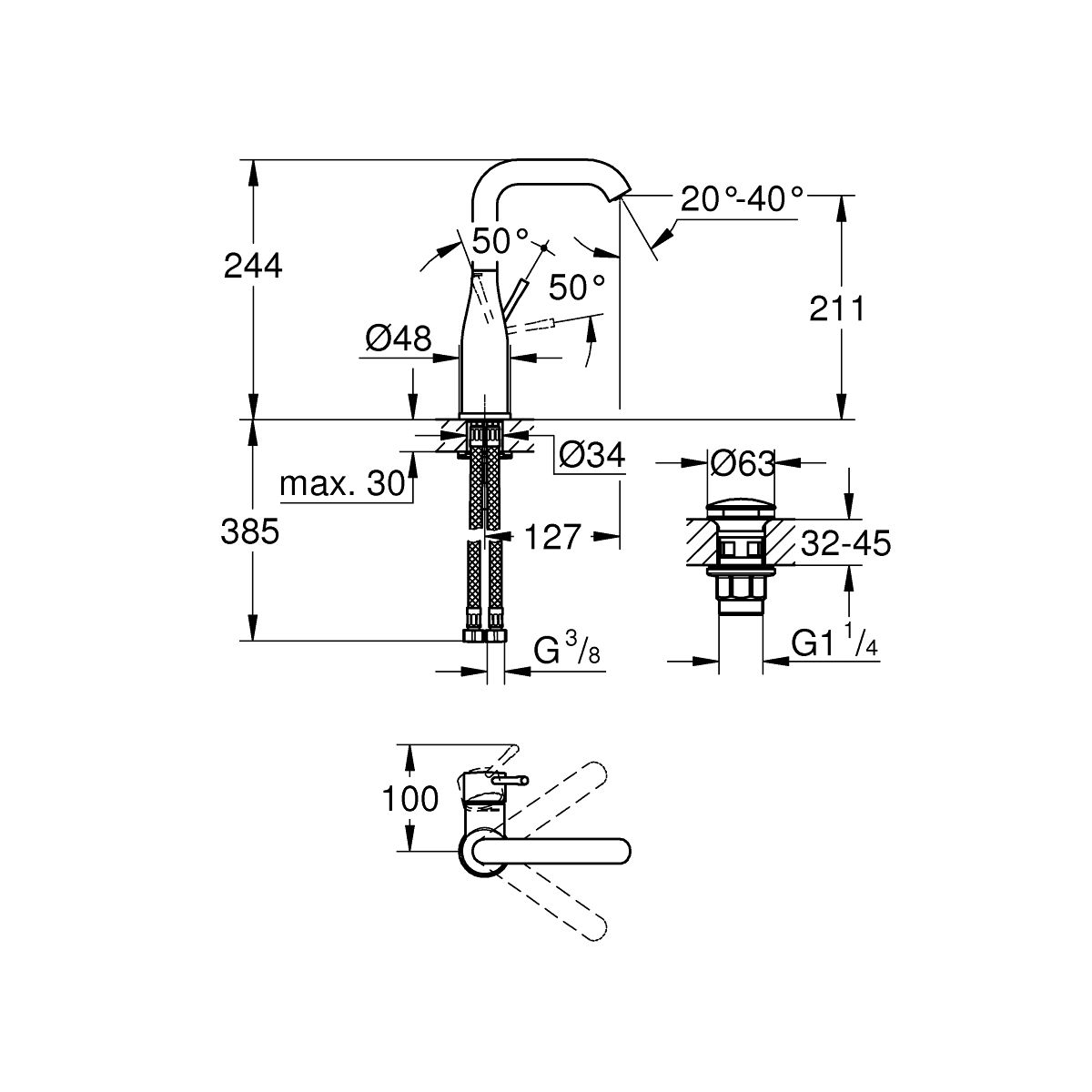 Grohe Essence Waschtischarmatur Stehend StarLight Chrome 23799001