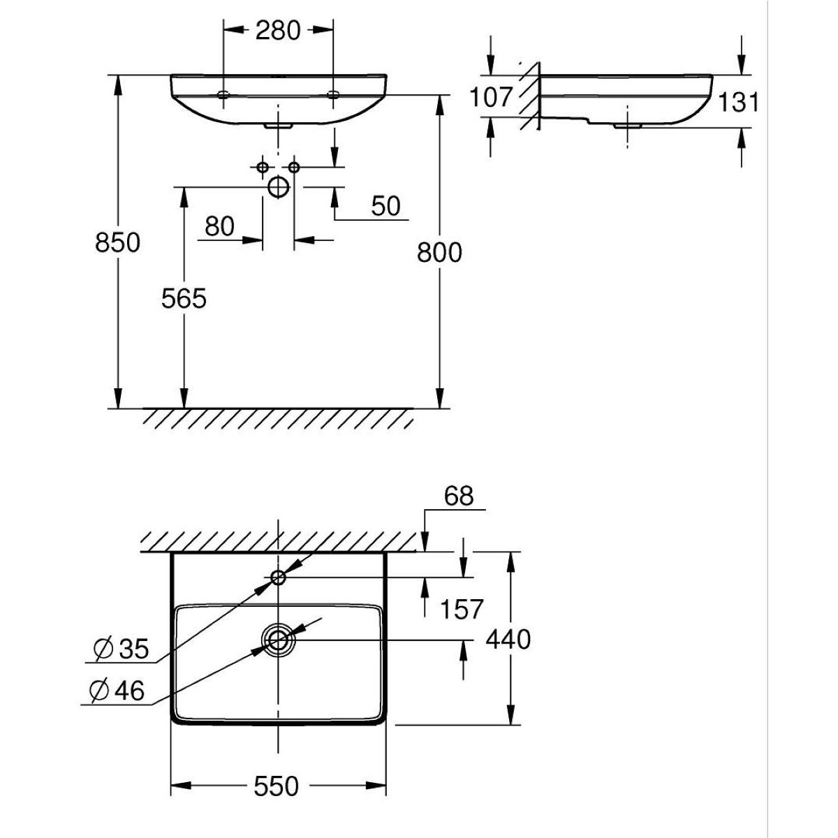 Grohe Euro Ceramic Waschbecken 55x44 cm rechteckig Klassisch weiß 102433SH00