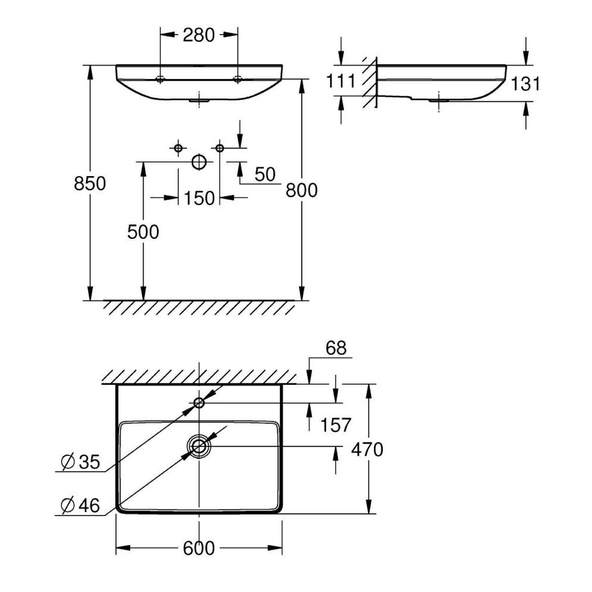 Grohe Euro Ceramic Waschbecken 60x47 cm rechteckig Klassisch weiß 102418SH00