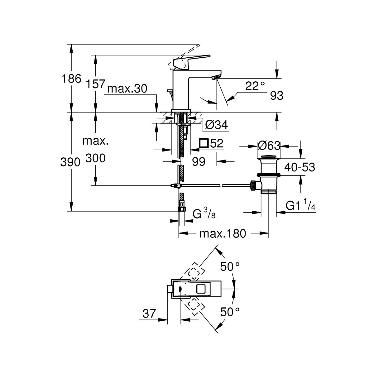 Grohe Eurocube Waschtischarmatur Stehend StarLight Chrome 2312700E