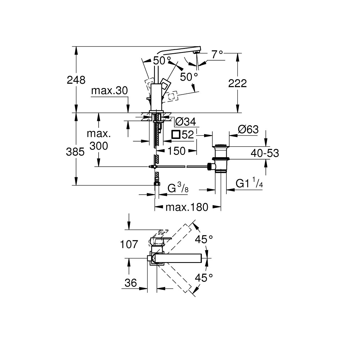 Grohe Eurocube Waschtischarmatur Stehend StarLight Chrome 2313500E