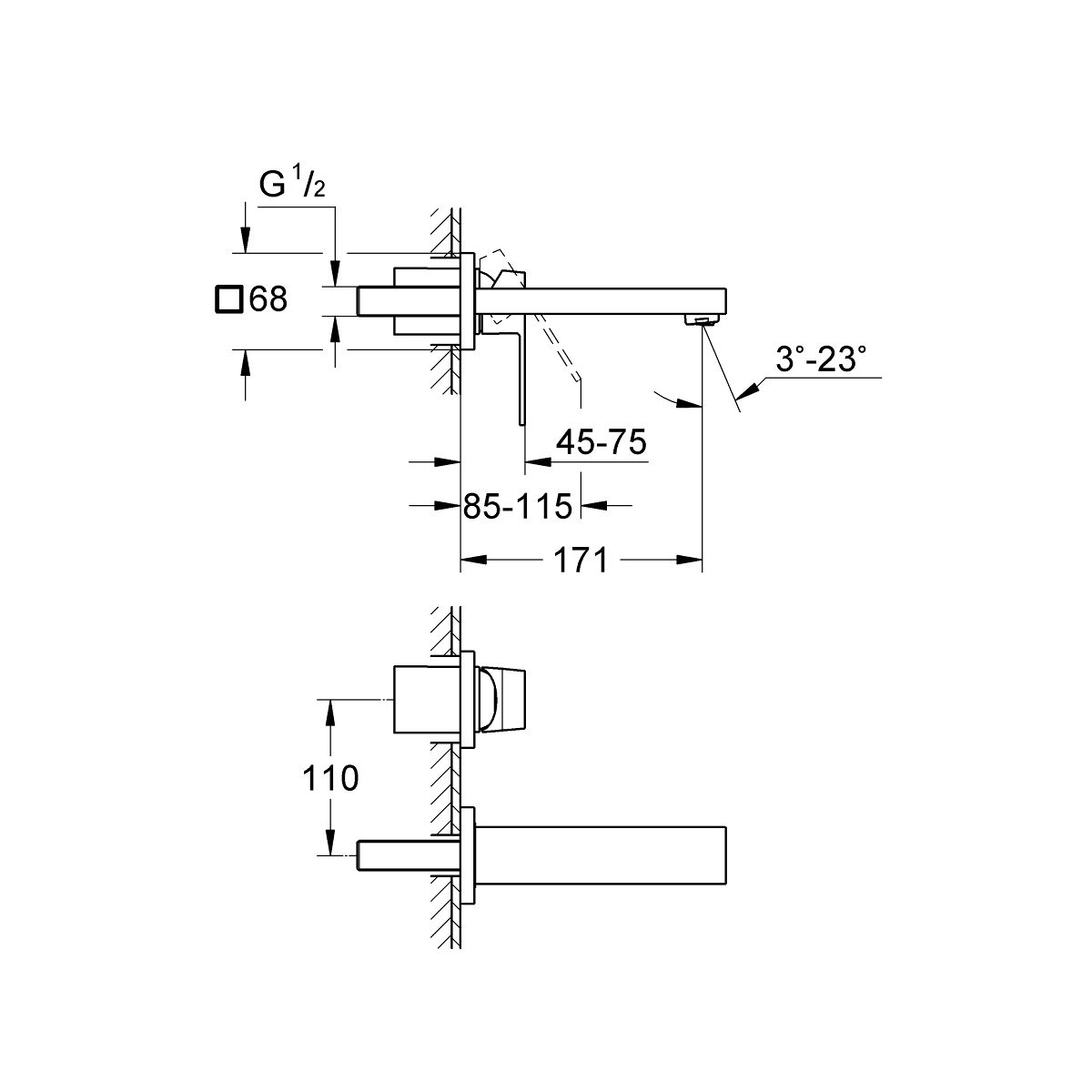 - zur Montage mit Unterputz-Element (separat zu bestellen): 23200