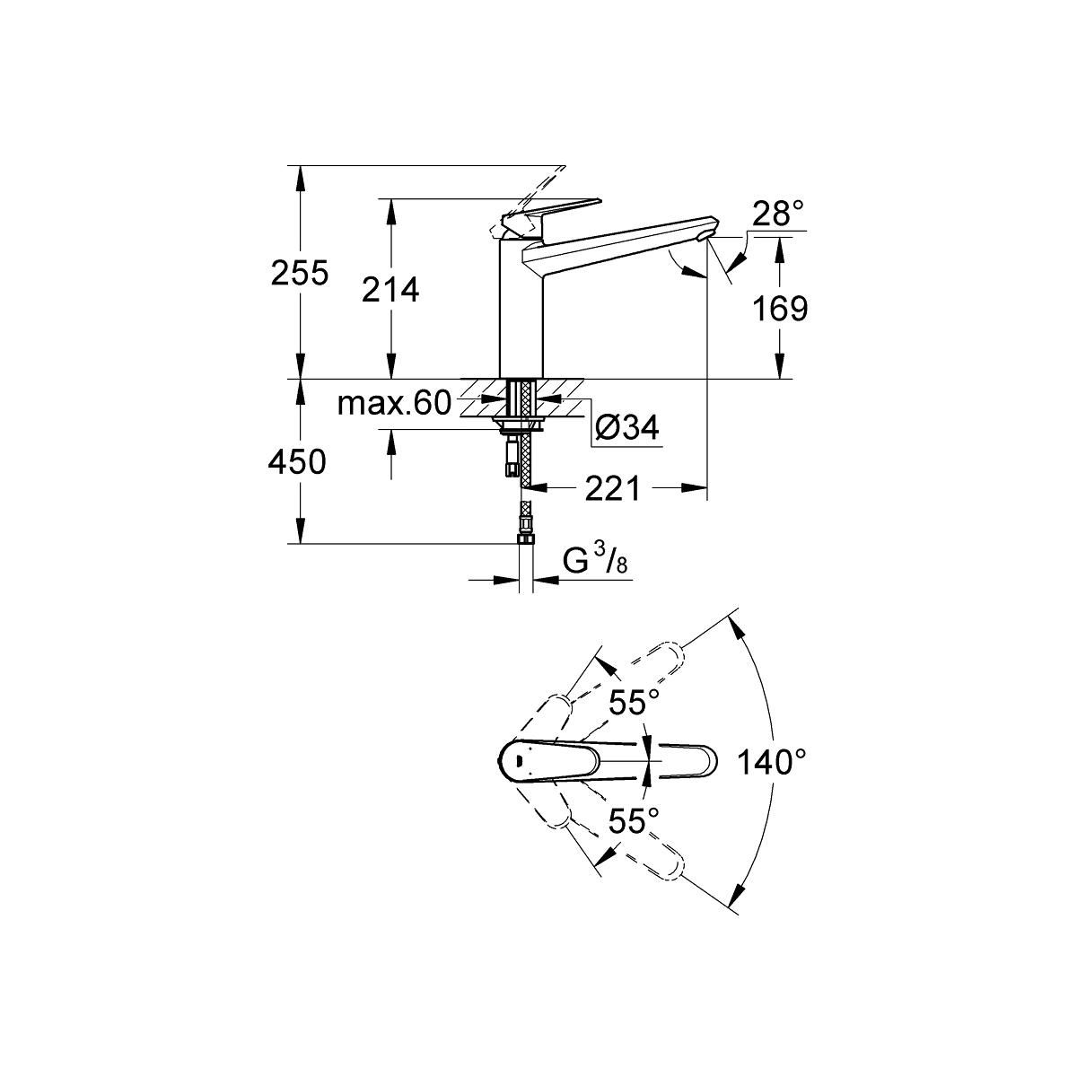 Grohe Eurodisc Cosmopolitan Küchenarmatur Stehend StarLight Chrome 33770002