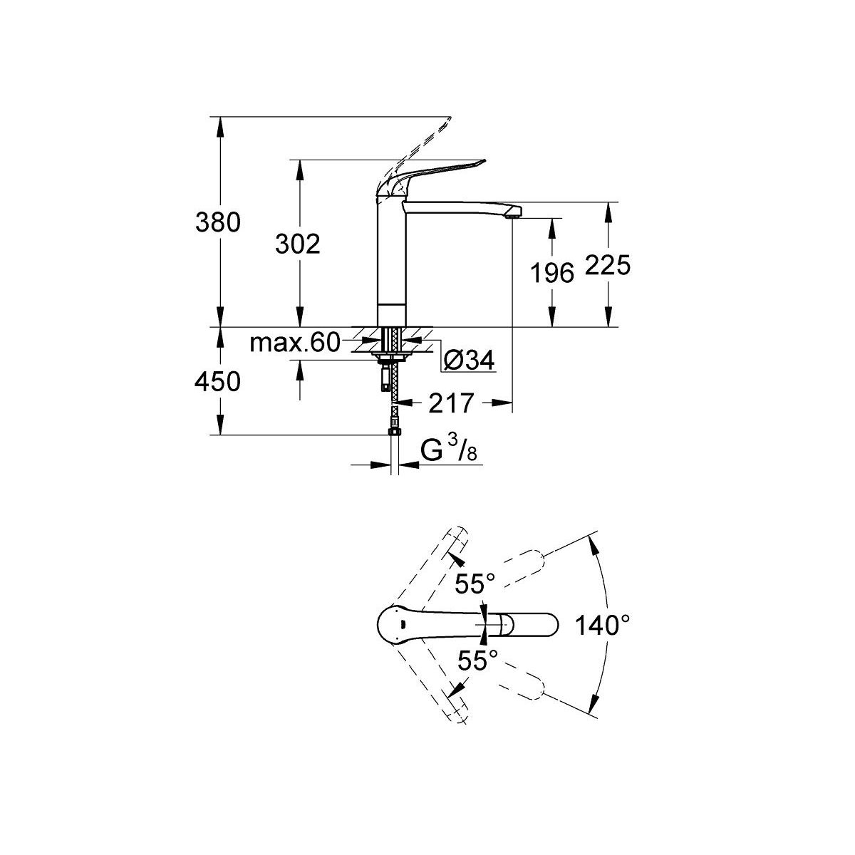 Grohe Euroeco Special Waschtischarmatur Stehend StarLight Chrome 30208000