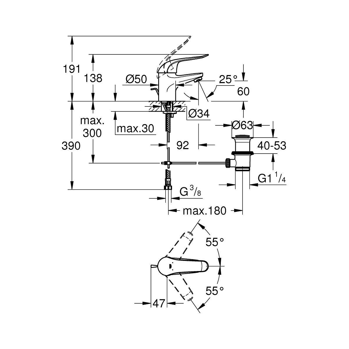 Grohe Euroeco Special Waschtischarmatur Stehend StarLight Chrome 32763000