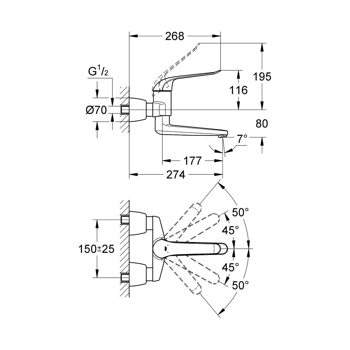 Grohe Euroeco Special Waschtischarmatur Wandmontage StarLight Chrome 32774000