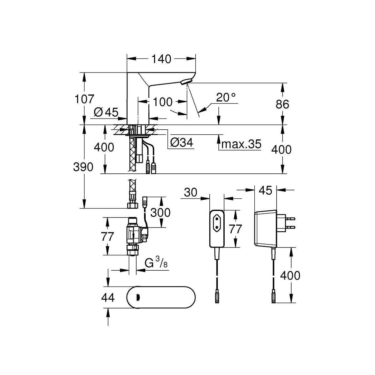 Grohe Euroeco Waschbeckenventil Stehend Elektronisch StarLight Chrome 36269000