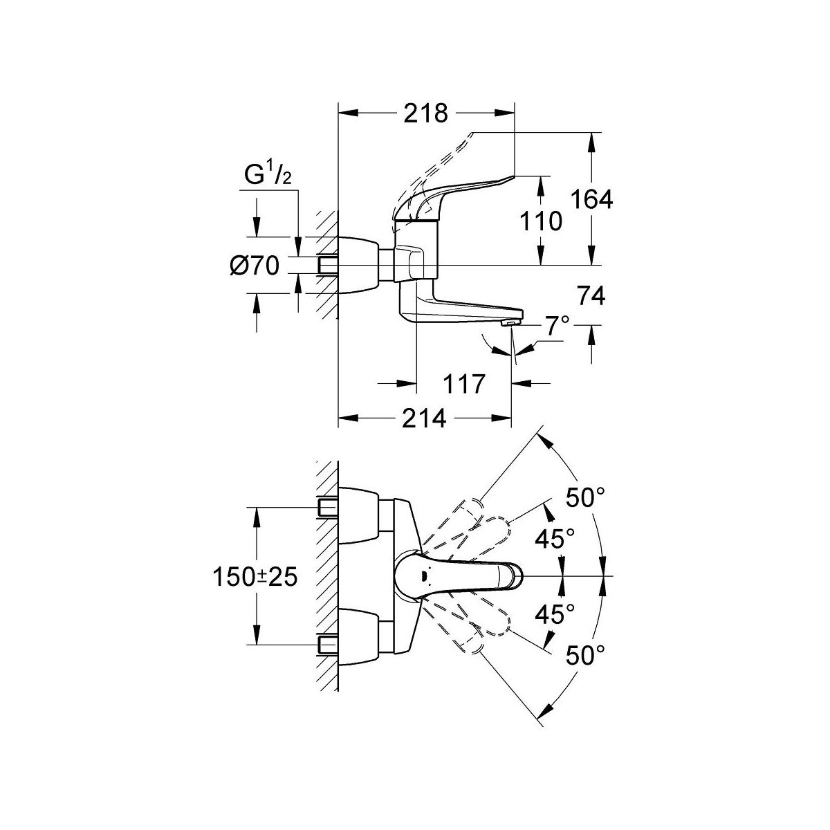 Grohe Euroeco Waschtischarmatur Wandmontage StarLight Chrome 32771000