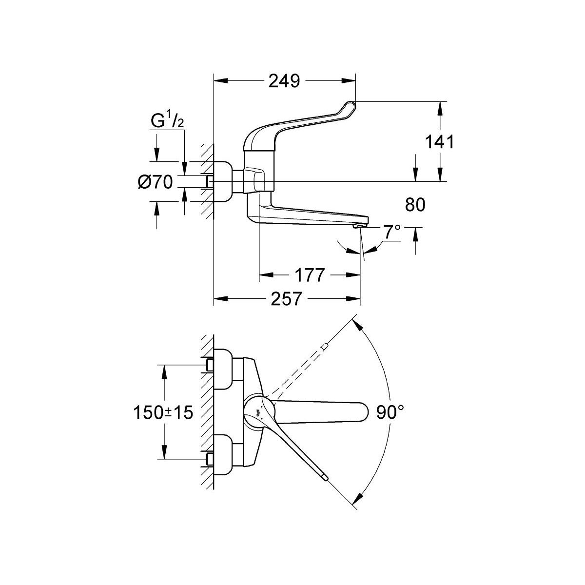 Grohe Euroeco Waschtischarmatur Wandmontage StarLight Chrome 32793000