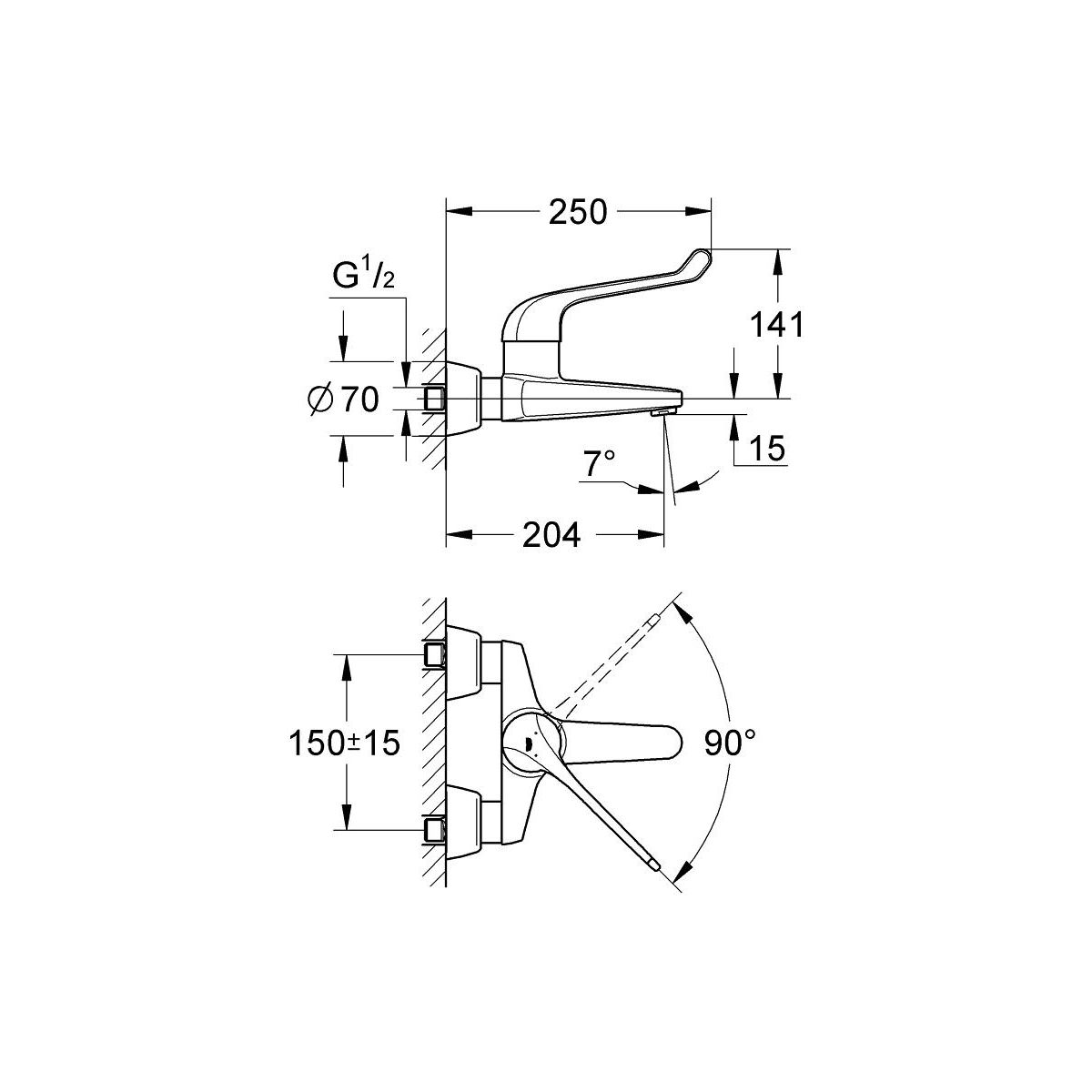 Grohe Euroeco Waschtischarmatur Wandmontage StarLight Chrome 32795000
