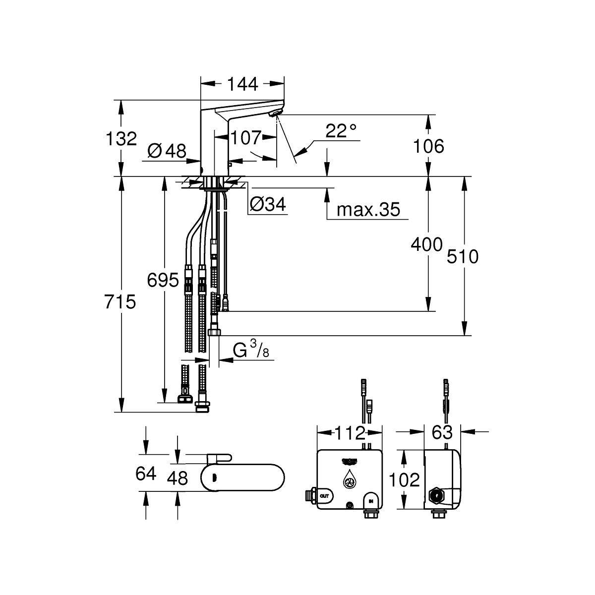 Grohe Eurosmart Cosmopolitan Waschtischarmatur Stehend Elektronisch StarLight Chrome 36386001