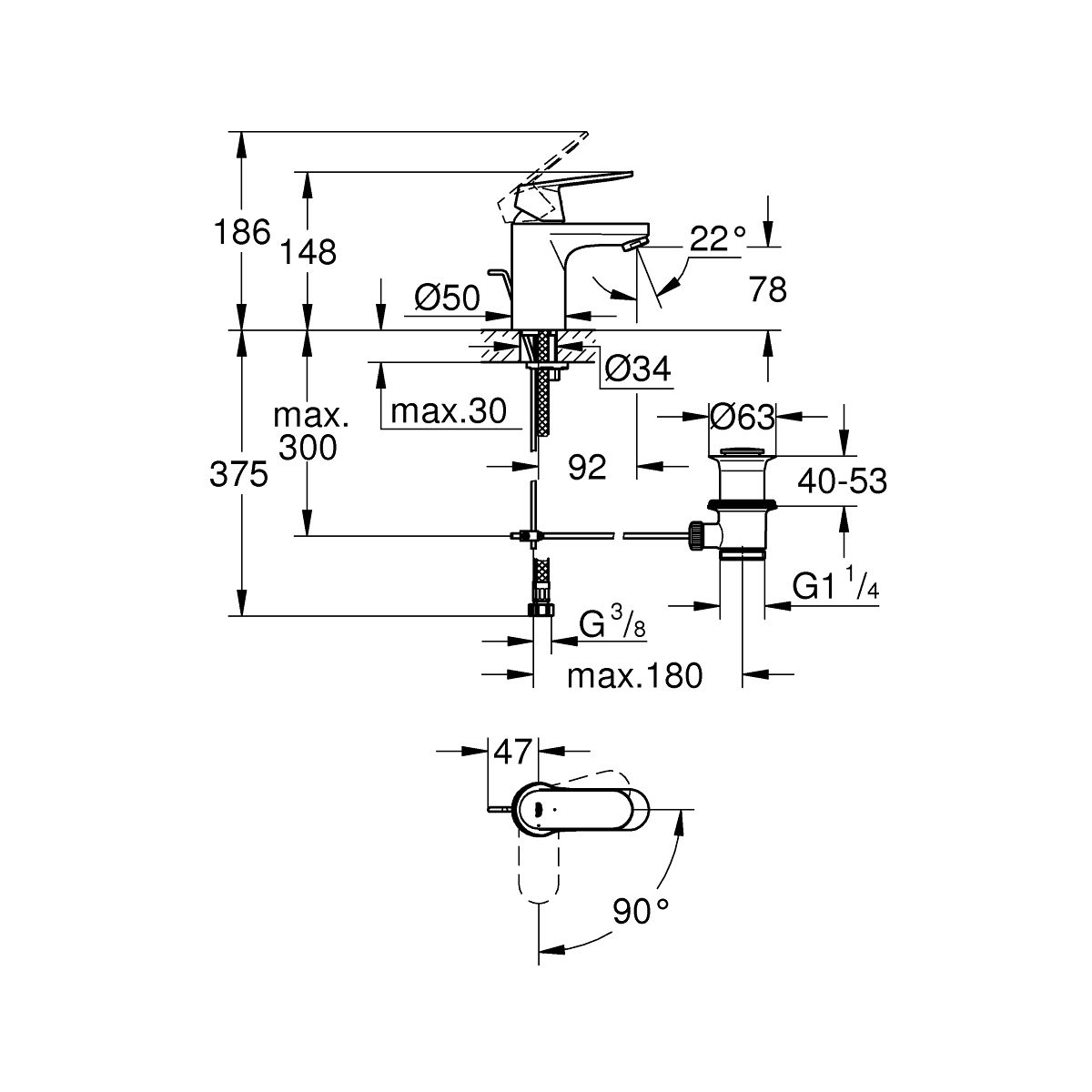 Grohe Eurosmart Cosmopolitan Waschtischarmatur Stehend StarLight Chrome 2337700E