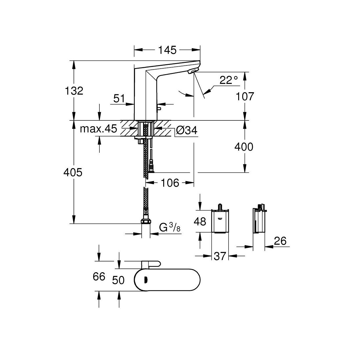 Grohe Eurosmart Waschtischarmatur Stehend Elektronisch chrom 36366002