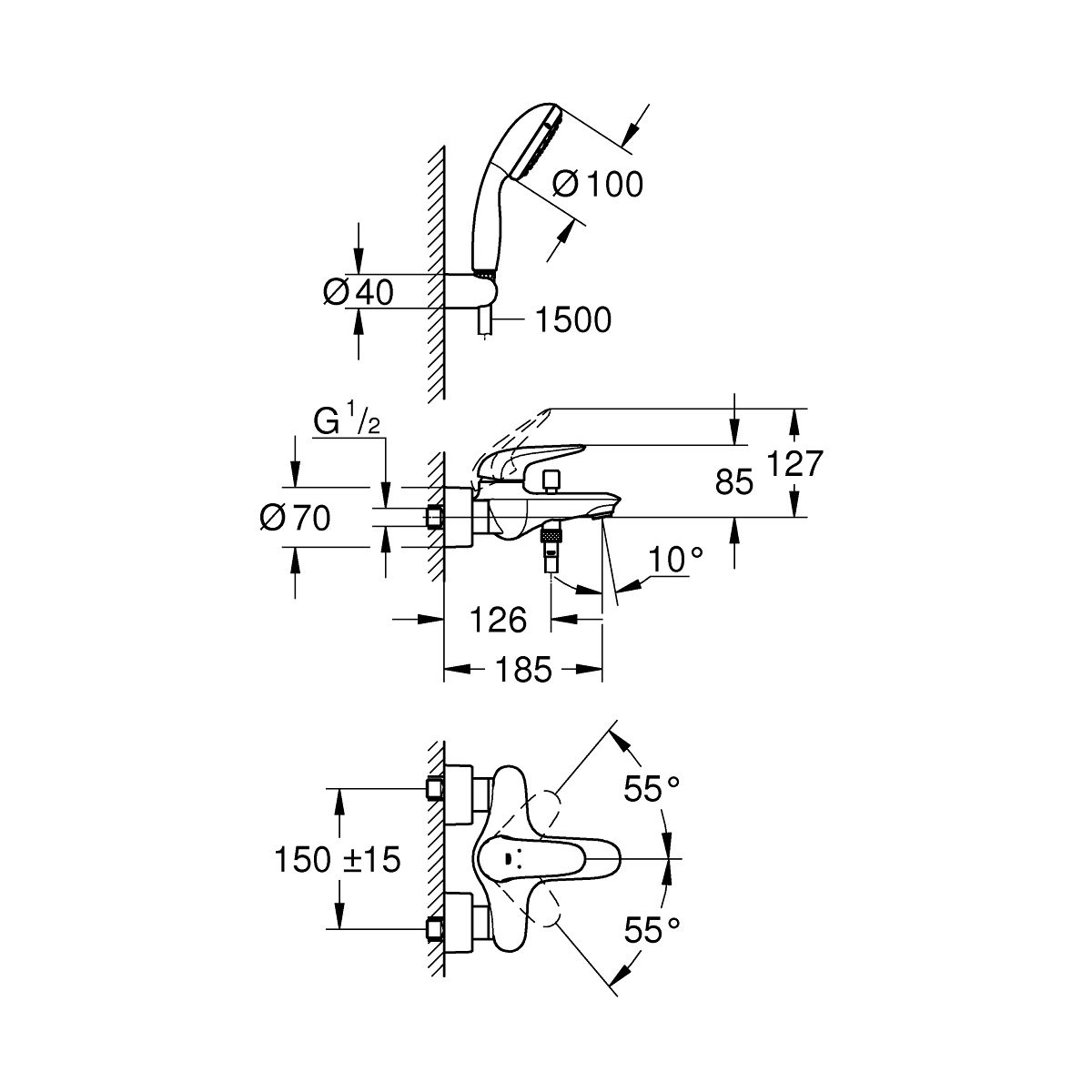 Grohe Eurostyle Badewannen- und Duscharmatur Wandmontage StarLight Chrome 2372930A
