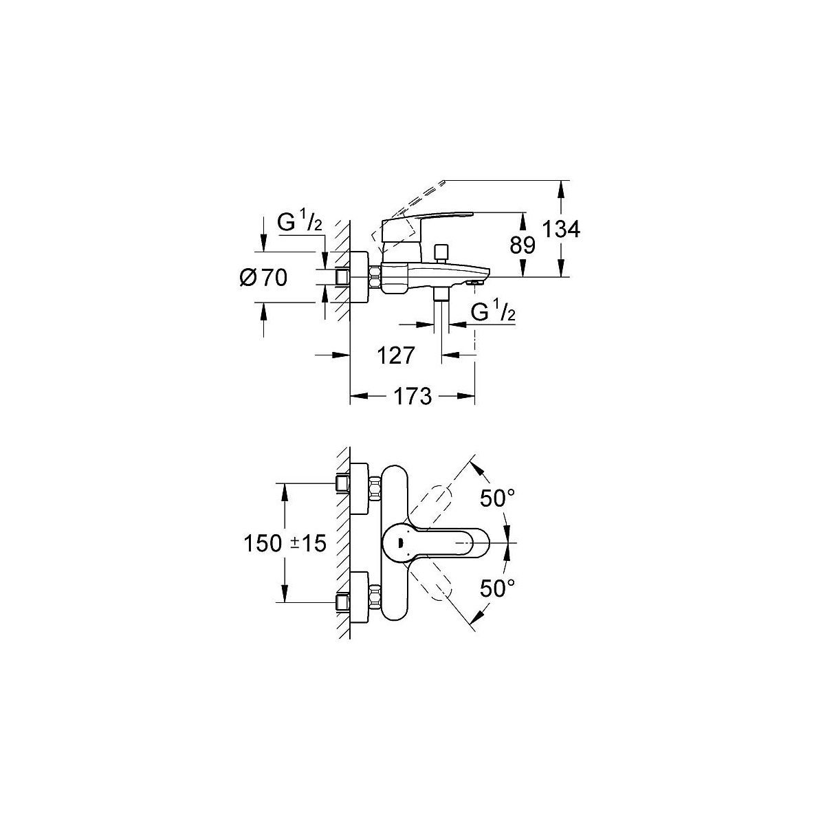 Grohe Eurostyle Badewannen- und Duscharmatur Wandmontage StarLight Chrome 33591002