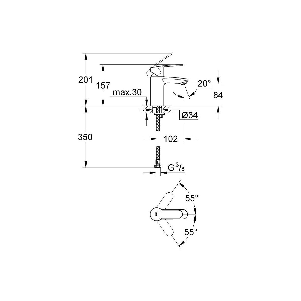 Grohe Eurostyle Cosmopolitan Waschtischarmatur Stehend StarLight Chrome 3246820E