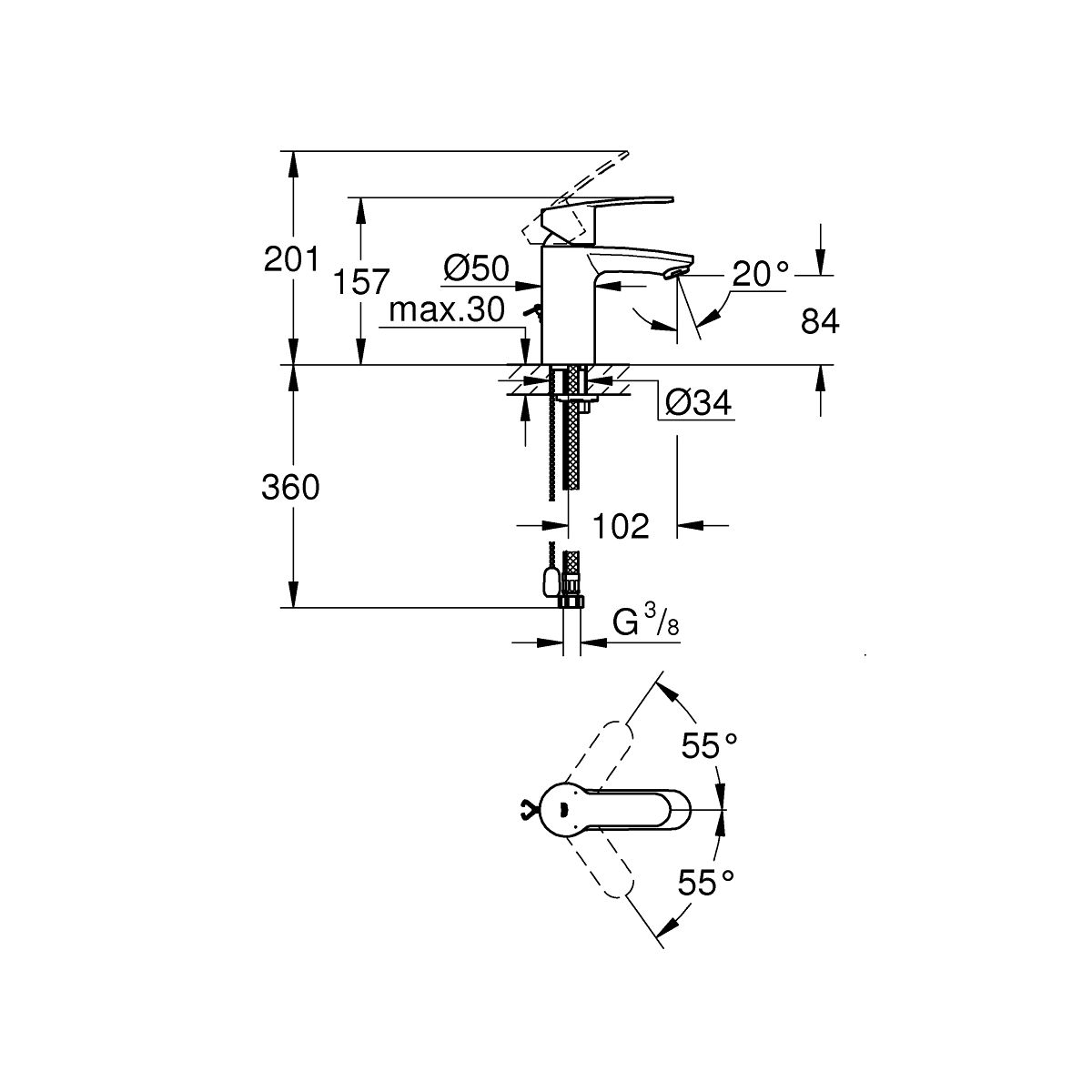 Grohe Eurostyle Cosmopolitan Waschtischarmatur Stehend StarLight Chrome 3355720E