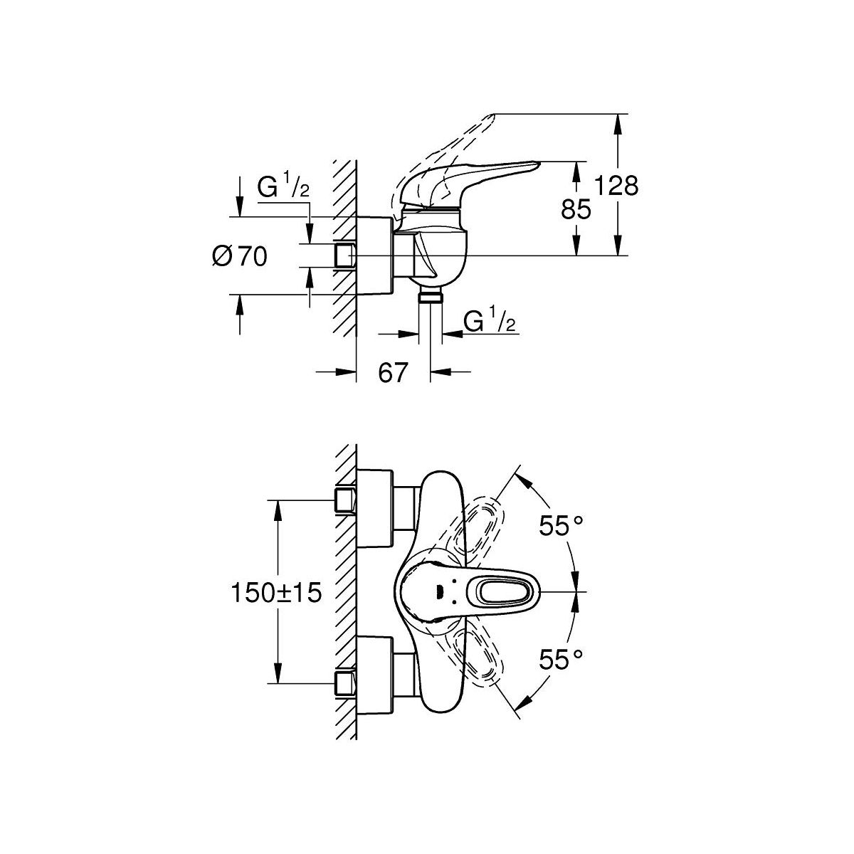 Grohe Eurostyle Duschbatterie Wandmontage StarLight Chrome 33590LS3