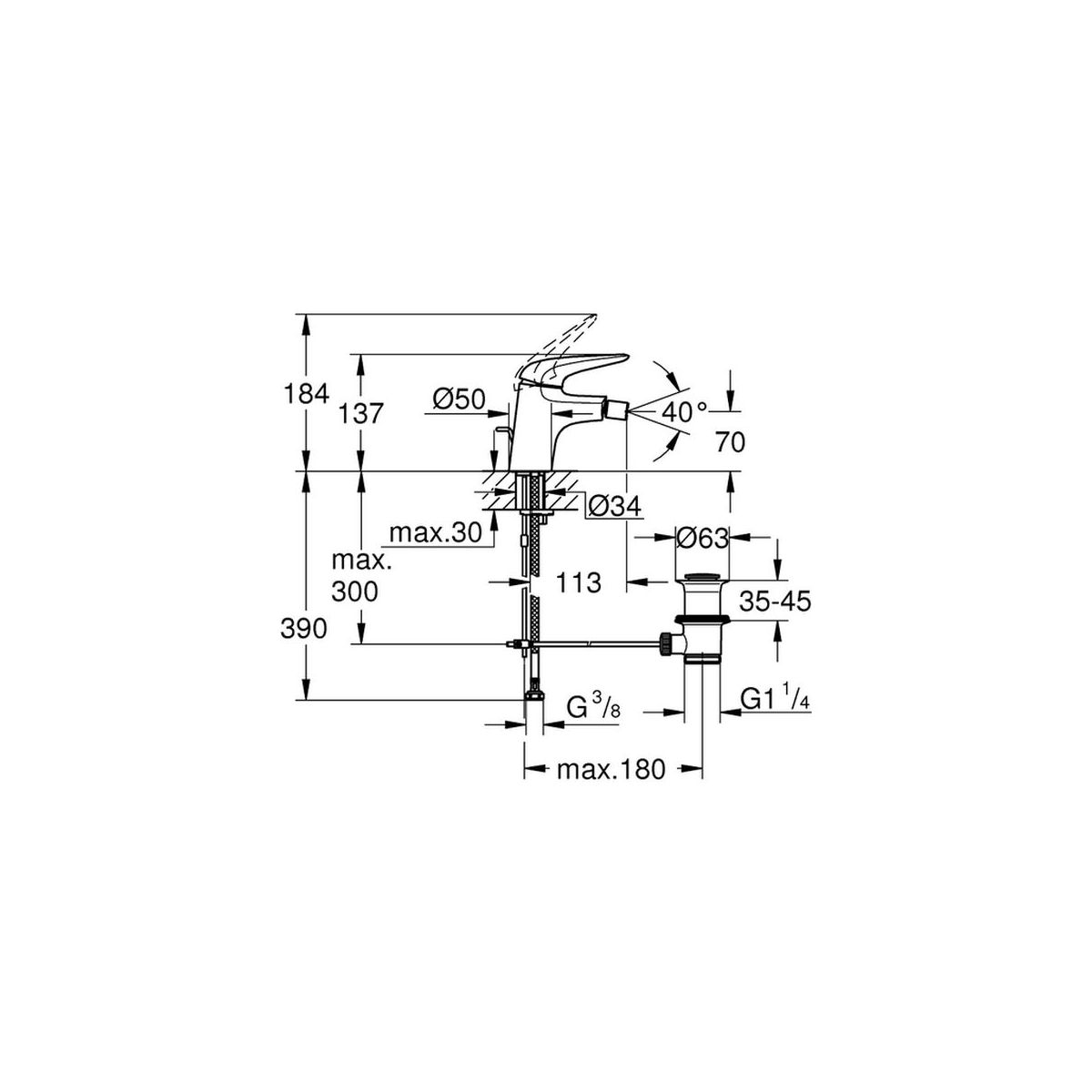 - Einhebel-Bidetarmatur, DN 15