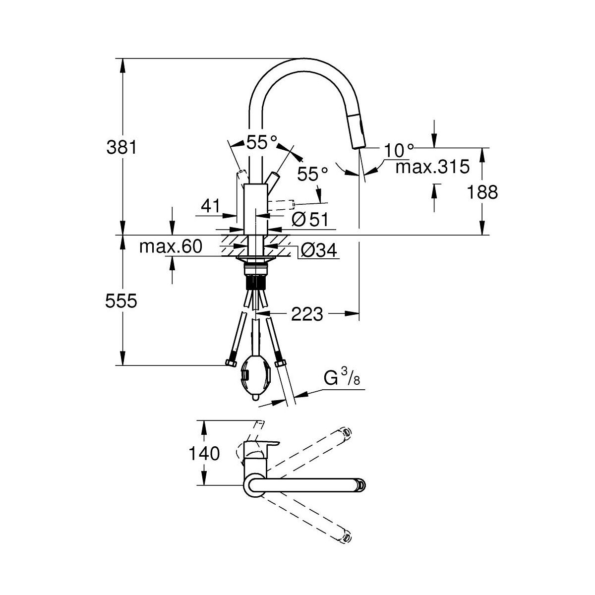- GroheE EasyDock zum einfachen Verstauen des ausziehbaren Auslaufs
